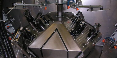 - Component retrieval / loading from workpiece carrier and production of 3 bores in a pump/impeller housing